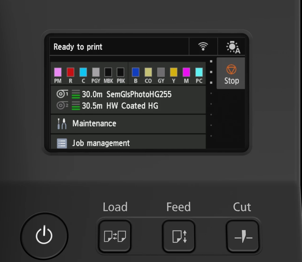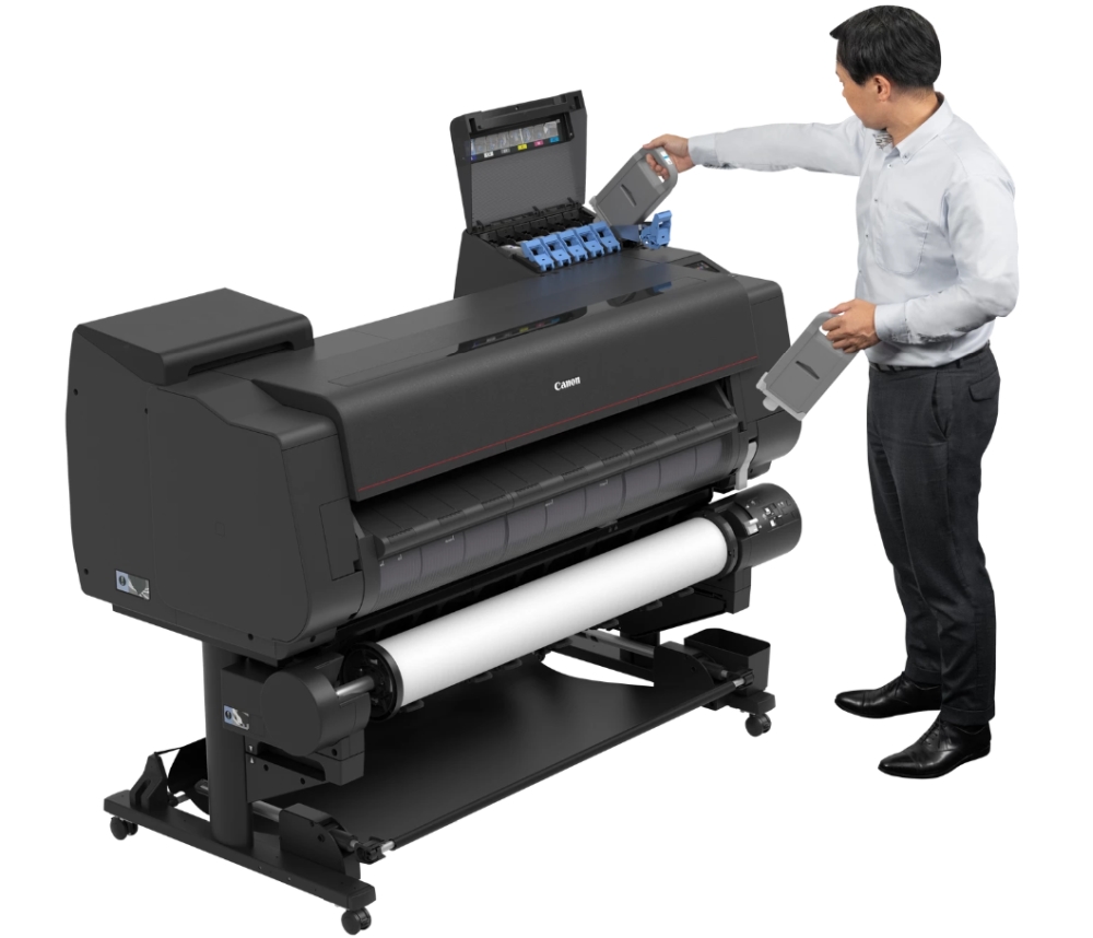 | Консумативи | MBK: PFI-2100 (160ml)/PFI-2300 (330ml)/PFI-2700 (700ml); Others:PFI-3100 (160ml)/PFI-3300 (330ml)/PFI-3700 (700ml); Print Head: PF-10; Cutter Blade: CT-07; Maintenance Cartridge: MC-30 |