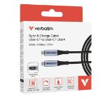 VERBATIM памети и аксесоари >> Verbatim Sync & Charge USB-C to USB-C 240W 40 Gbps Display 120 cm