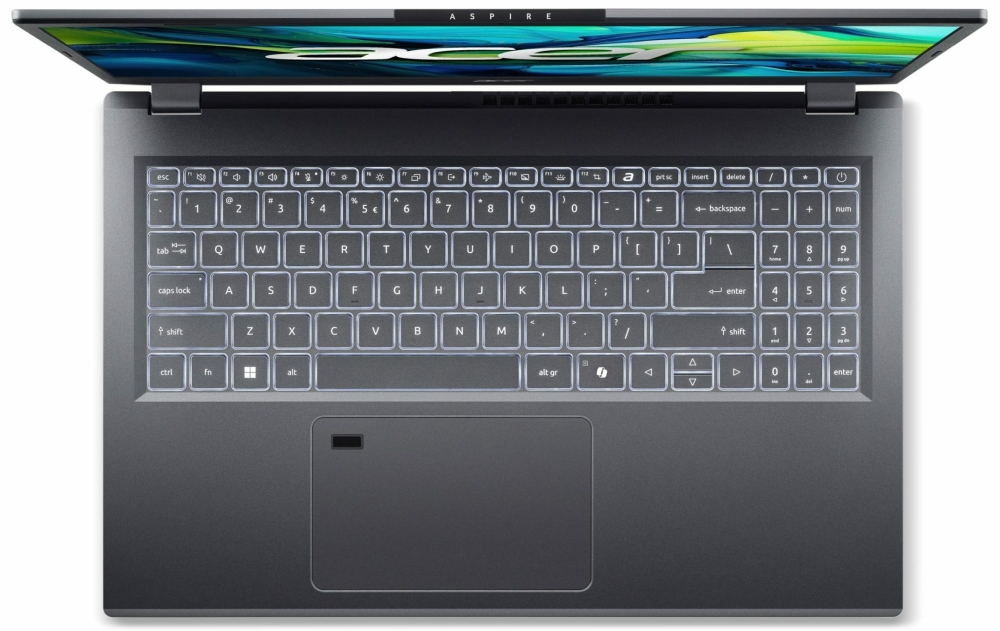 Лаптоп, Acer Aspire 15, A15-51M-59Z7, Intel Core 5 120U (up to 5.00GHz, 12MB), 15.6" QHD (2560x1440) IPS SlimBezel, 1*16GB DDR5 4600MHz (1 slot free), 512GB PCIe NVMe SSD, Intel UMA, FHD Cam,WiFi 6E, BT 5.3, Backlit Kbd, No OS, Steel Gray