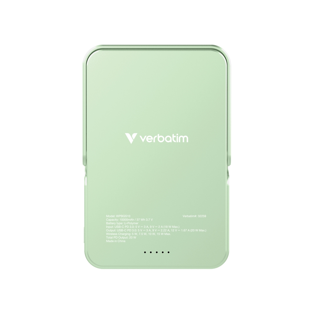 Външна батерия, Verbatim Charge 'n' Go Power Bank with Stand Magnetic Wireless 10000mAh Green