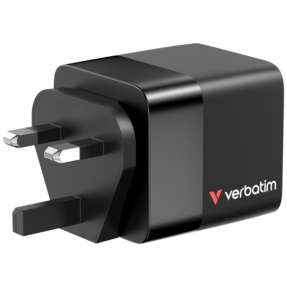 VERBATIM памети и аксесоари >> Verbatim Mini GaN Charger 65W 2 Port retractable cable display US plugs with EU and UK adaptors