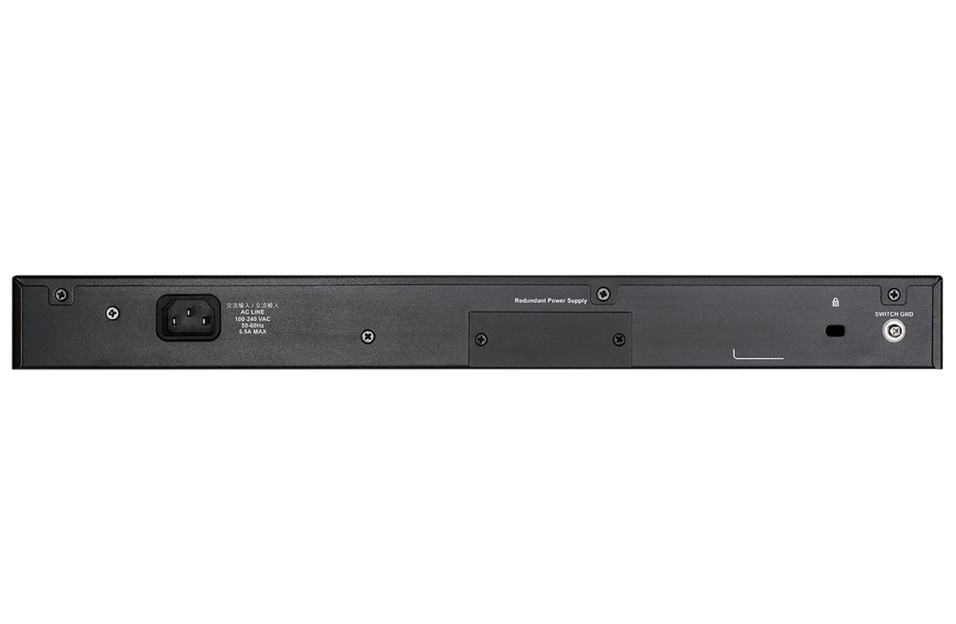 | Power Over Ethernet (PoE) | IEEE 802.3af and IEEE 802.3at PoE Standard; PoE Capable Ports (Ports 1 to 48: Up to 30 W); PoE Power Budget: Max. 370 W (740 W with DPS-700 RPS redundant power supply) |