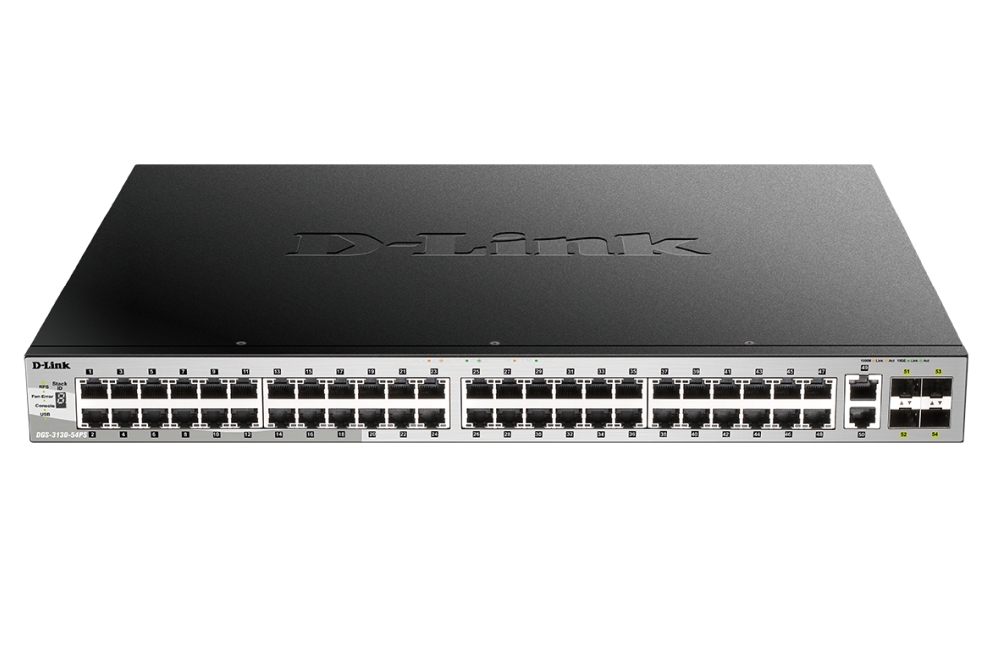 Commutator/ Switch, D-Link 48x10/100/1000BASE-T PoE ports (370W budget) Layer 3 Stackable Managed Gigabit Switch with 2x10GBASE-T ports and 4xSFP+ ports