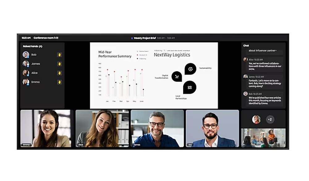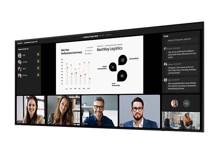 | Пренесете срещите си на следващото ниво със 105-инчовия суперголям дисплей. Неговият експанзивен, ултраширок екран елиминира необходимостта от множество дисплеи, предлагайки безупречен, непрекъснат изглед без разсейващите граници между екраните. Съотношението 21:9 на QPDX-5K е проектирано за днешните модерни пространства за срещи и е оптимизирано за видеоконференции. Независимо дали участниците присъстват на място или от разстояние, дисплеят осигурява еднаква ангажираност в наистина завладяваща среда за срещи, която насърчава сътрудничеството. Насладете се на безжично споделяне на екрана за безпроблемно сътрудничество. Започнете да споделяте още от началото на срещата и превключвайте между екрани с едно щракване. QPDX-5K поддържа до 10 екрана наведнъж. Свързването е подобрено с USB-C порт, което позволява на потребителите да отразяват екрани и да зареждат устройства едновременно. Една единствена връзка през USB Type-C порта осигурява безпроблемна, завладяваща и интерактивна комуникация. Open Pluggable Specification (OPS) на QPDX-5K трансформира дисплея в Windows устройство, като елиминира необходимостта от допълнителни компютри или устройства. С OPS потребителите могат лесно да стартират предпочитания от тях софтуер директно на QPDX-5K, подобрявайки продуктивността и гъвкавостта на срещите. Надграденият потребителски интерфейс на началния екран повишава използваемостта чрез показване на популярни категории като Любими, Източници и Настройки на едно място. Потребителите имат незабавен достъп до често използвани функции с едно щракване през папката Любими, което осигурява бърза и лесна навигация. Вашата марка блести постоянно на всеки дисплей, на всяко място. Интелигентното калибриране на мобилното приложение на Samsung прецизира всеки екран, вдъхвайки живот на логото и визуалните елементи на вашата марка с прецизни, живи цветове, които привличат вниманието. Вградените професионални режими разкриват нови възможности за специализираните индустрии. Режимът Director минимизира последващата обработка, за да запази първоначалното намерение на режисьора, докато режимът DICOM Simulation позволява на медицинските екипи да симулират изображения като рентгенови лъчи, отговаряйки на пълните стандарти на DICOM в сивата скала. Samsung SmartThings се простира отвъд дома, като се интегрира безупречено в бизнес среди. Неизползваните устройства в заседателните зали автоматично се изключват, докато системата настройва климатика за оптимална енергийна ефективност. Базираният в облака Samsung VXT обединява възможности за управление на съдържание и отдалечено управление на устройства, което ви позволява да контролирате от разстояние настройките на хардуера и да отстранявате проблеми, докато безпроблемно създавате и внедрявате съдържание без необходимост от предварително обучение. QPDX-5K получи сертификат ENERGY STAR 8.0 от Агенцията за опазване на околната среда за своята енергийна ефективност, както и сертификат EPEAT в знак на признание за неговите екологични усилия, включително използването на рециклирана пластмаса. |