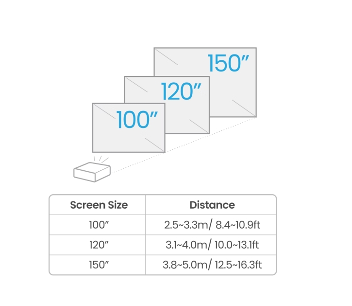 | Screen size, inch | 60'' ~ 200'' (152.4 ~ 508 cm) |