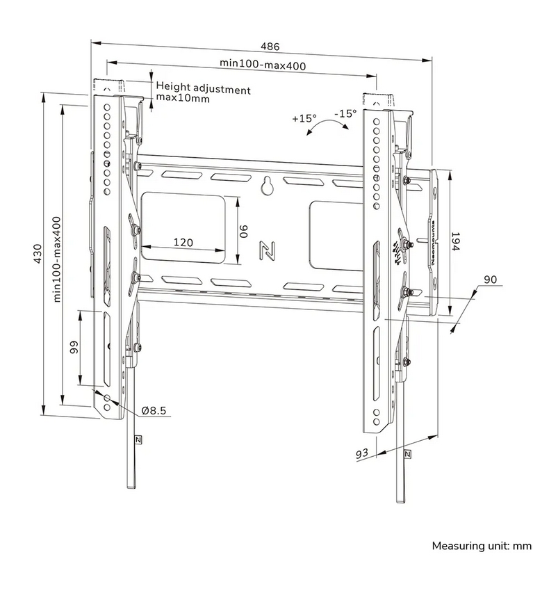 | Наклон | -15° ~ 15° |