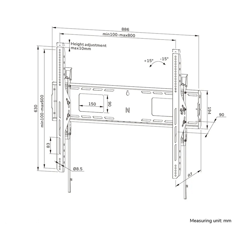 | Регулируема дължина | Height: 68.4 cm (adjustment: 1 cm), Width: 88.6 cm, Depth: 9.3 cm, Adjustment type: Manual |