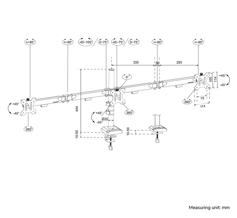 | Swivel | -90° ~ 90° |