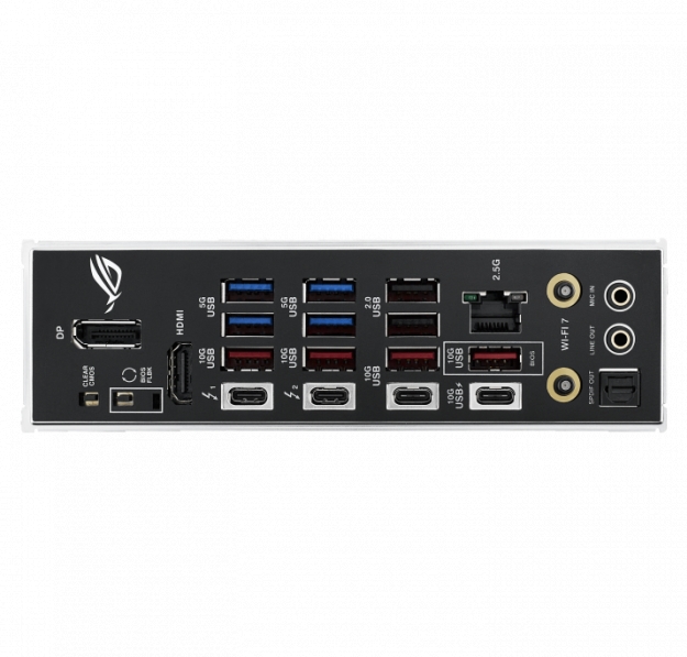 | Интерфейс | 2 Thunderbolt 4, 6 USB 10Gbps ports, 4 USB 5Gbps ports, 2 USB 2.0 ports, DisplayPort, Intel 2.5Gb Ethernet port, 2 Gold-plated audio jacks, Optical S/PDIF out, BIOS FlashBack button, Clear CMOS button |