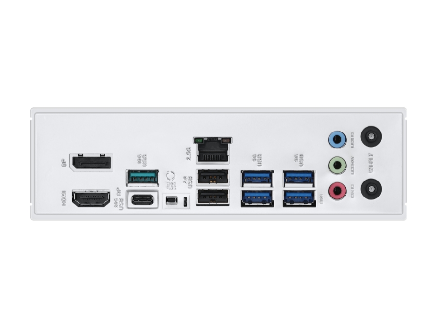 | Интерфейс | USB 20Gbps port, USB 10Gbps port, 4 USB 5Gbps ports, 2 USB 2.0 ports, DisplayPort, HDMI, Realtek 2.5Gb Ethernet, 3 Audio jacks, BIOS FlashBack button |