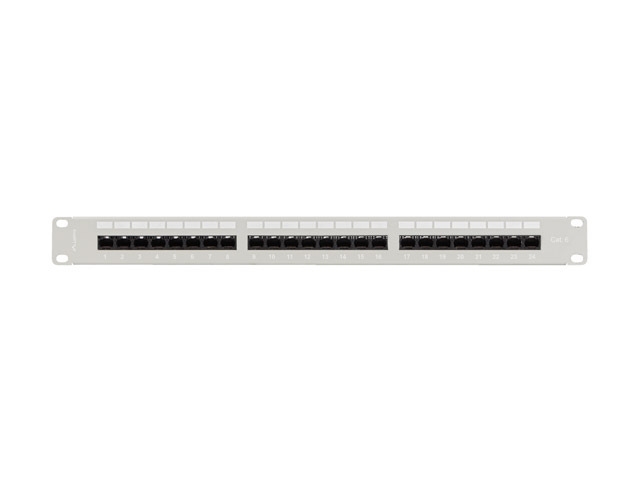 Patch panel, Lanberg patch panel 24 port 1U 19" CAT.6 utp with cable organizer grey