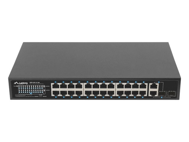 Комутатор, Lanberg switch 24x 100mb poe+/2x combo rack 19" gigabit ethernet 360w v2