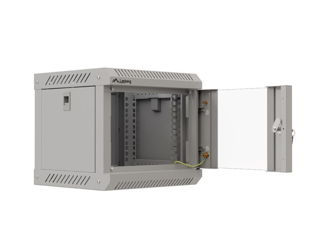 LANBERG сървърни шкафове и аксесоари >> Lanberg rack cabinet 10" wall-mount 4U/300x300 (flat pack) with glass door grey