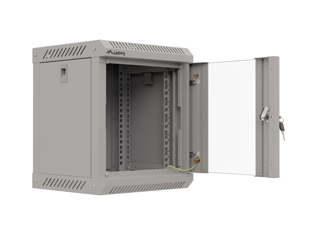 LANBERG сървърни шкафове и аксесоари >> Lanberg rack cabinet 10" wall-mount 6U/300x300 (flat pack) with glass door grey