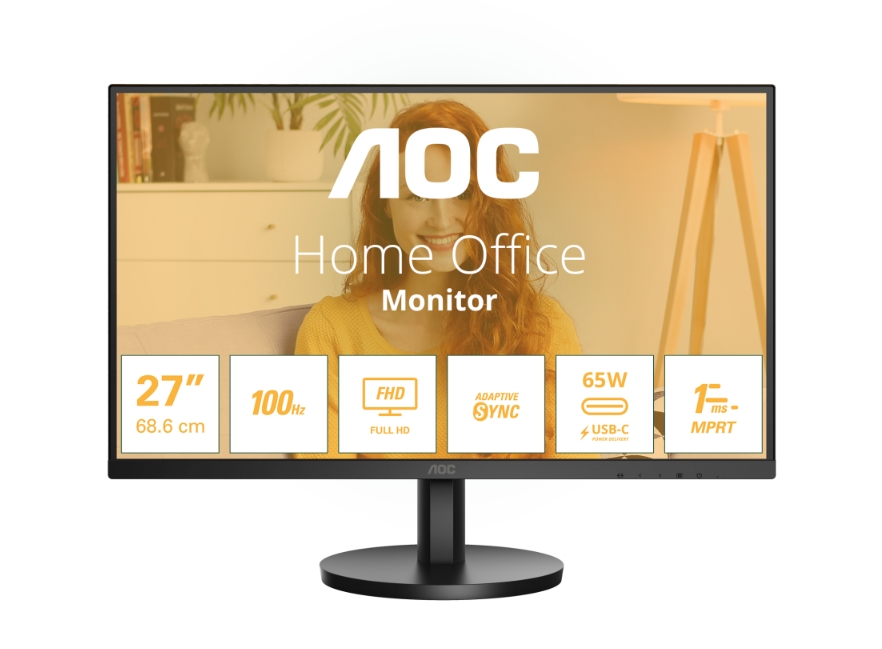 Монитор, AOC 27B3CA2, 27" IPS WLED, 1920x1080@100Hz, 4ms GtG, 1ms MPRT, 250cd m/2, 1300:1, 20M:1, Adaptive Sync, FlickerFree, Low Blue Light, 2Wx2, Tilt, HDMI, USB hub