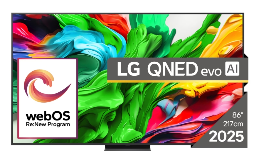 Телевизор, LG 86QNED86A3A, 86" 4K QNED HDR Smart TV, 3840x2160, 120Hz Native (VRR 144Hz), DVB-T2/C/S2, Alpha 8 AI Processor, HDR 10 PRO, webOS 25 ThinQ, 4K Upscaling, WiFi 5, Dolby Vision, Bluetooth 5.1, AirPlay 2, LAN, CI, HDMI, SPDIF, Stand