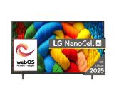 Телевизор, LG 50NANO80A3B, 50" 4K HDR Smart Nano Cell TV, 3840x2160, DVB-T2/C/S2, AI Alpha 7, HDR 10 PRO, webOS 25, ThinQ AI, VRR, ALLM, HGiG, WiFi, Clear Voice, AI Upscaling, Bluetooth, Hdmi e-ARC , CI, LAN, AirPlay2, Chromecast, 2 Pole stand, Black