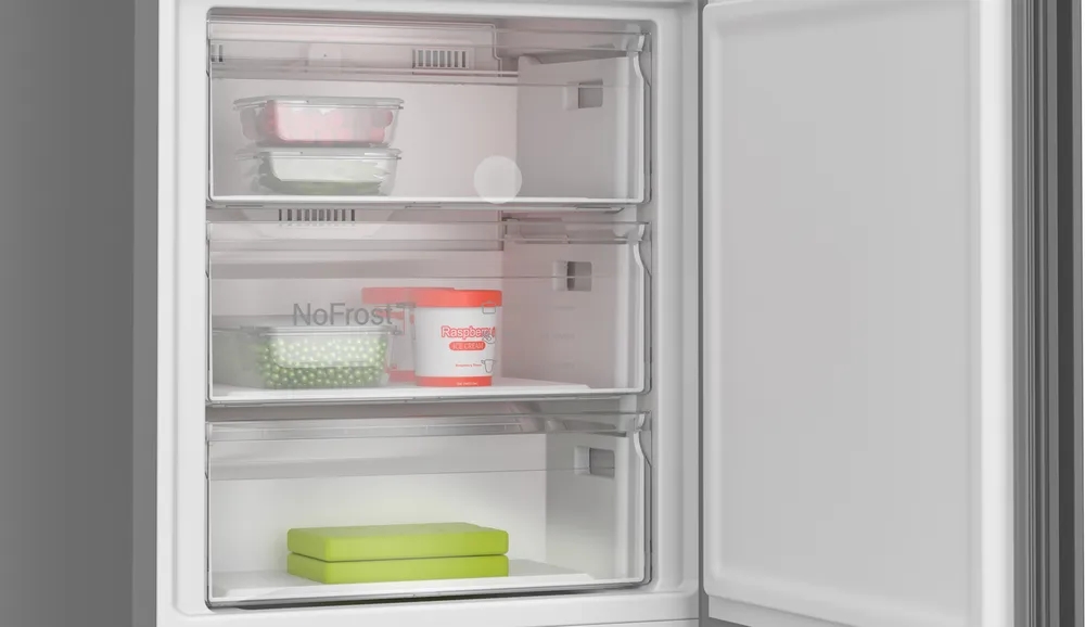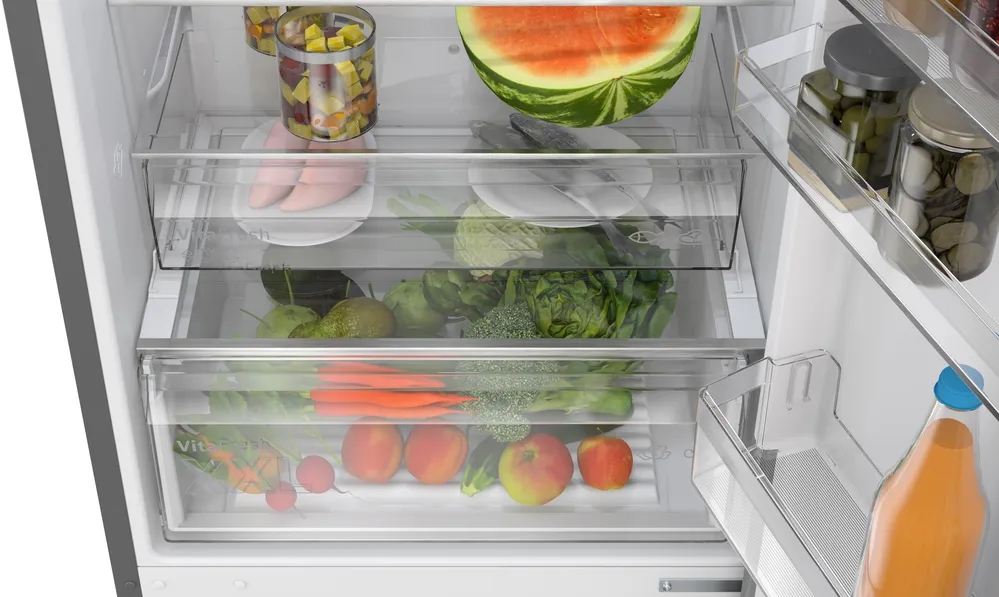 | Други | Refrigerating part: Multi Airflow system, VitaFresh, 5 tempered glass stands, of which 3 adjustable height, Bottle holder, chrome, glossy, 4 pcs. door holders; Freezing part: 3 Freezer drawers |