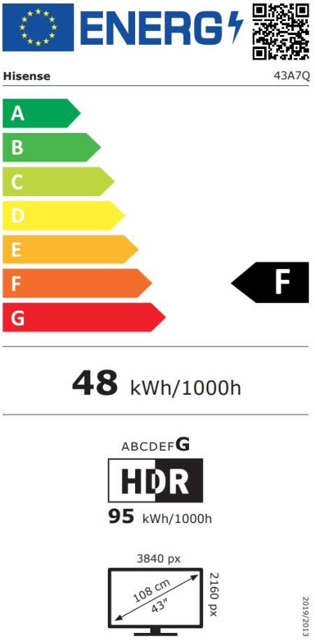 Television, Hisense 43" A7Q, 4K Ultra HD 3840x2160, QLED, FALD, Quantum Dot, HDR 10+, HLG, Dolby Vision, Dolby Atmos, Smart TV, WiFi 5GHz, WiFi Direct, BT, Anyview Cast, 3xHDMI, 2xUSB, LAN, CI+, DVB-T2/C/S2, Black