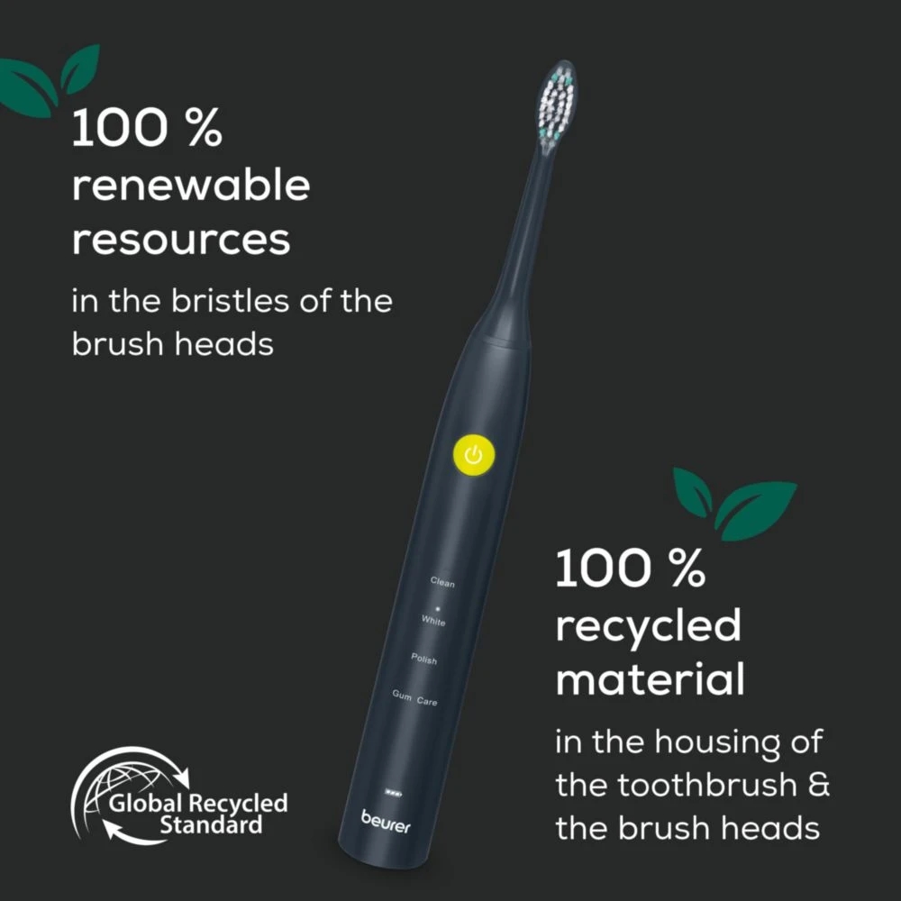 Electric toothbrush, Beurer SC 30 Jet Black, Electric Sonic Toothbrush, up to 80,000 mov/min, 4 cleaning programs: Clean, White, Polish, Gum Care, Int. 2-min. timer, Incl. 2 toothbrush heads and USB-C charging cable, 15 days of battery life