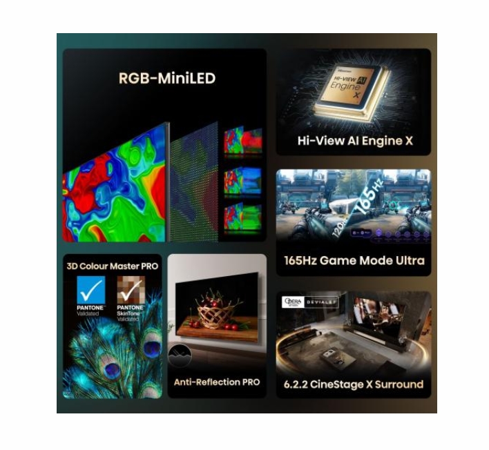 Television, Hisense, 116'' UXQ,RGB Mini-LED, FALD, 165Hz, 3x4000 nits,Quantum Dot, Vidaa, ADS, Black