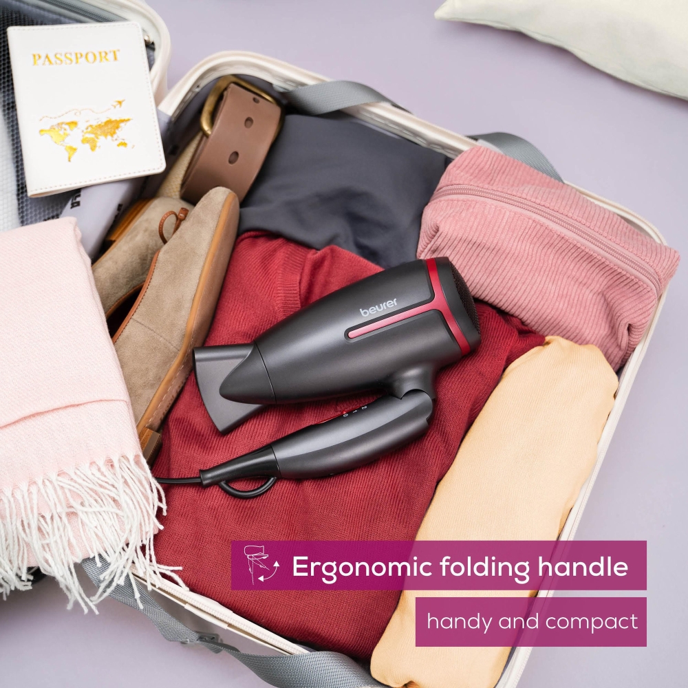 Other Foldable handle - perfect for travelling, Removable Safety Filter - for easy cleaning, Soft Touch Surface, With narrow professional nozzle, Automatic overheat protection, Loop for hanging - for easy storage