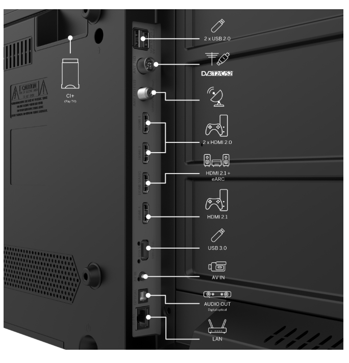 | Изводи за свързване | 4 HDMI, 3 USB, SPDIF optical, CI+ |