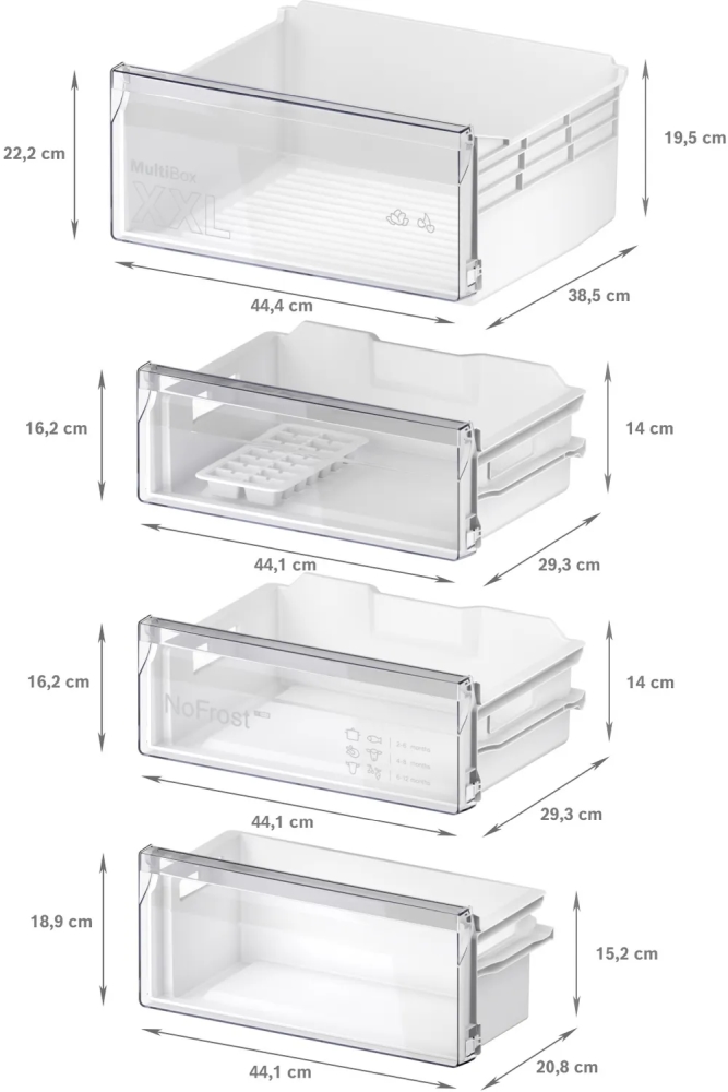 | Other | EcoAirflow, SuperFreeze, LED freezer light, Soft Close, sliding hinge |