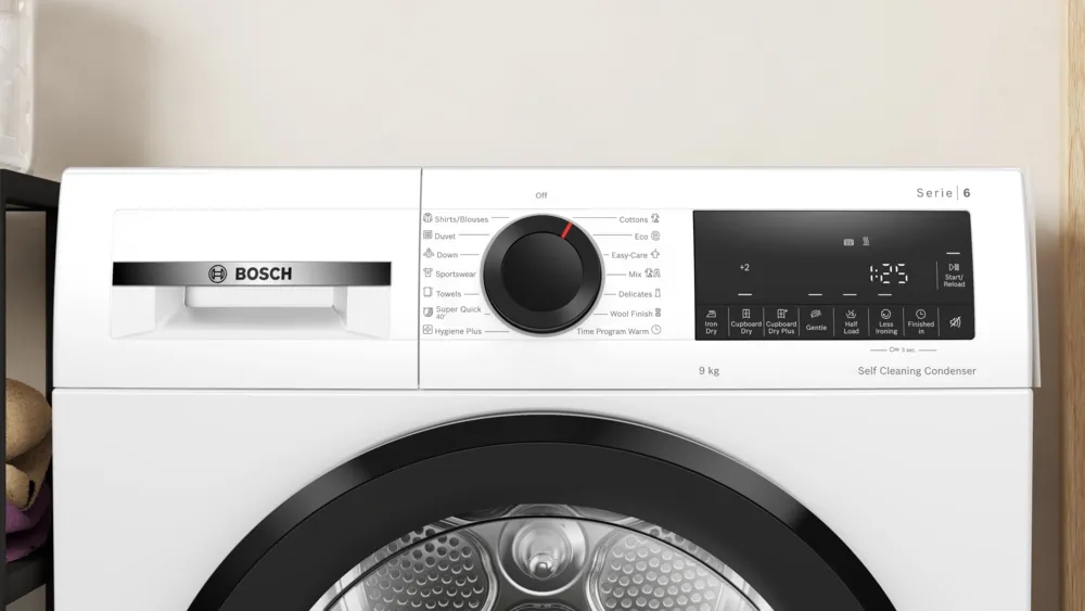 | Special features | EasyClean, Anti-crease 120 min at the end of the program, Half load option: optimizes drying with less laundry, TouchControl buttons: Iron dry, Cupboard dry, Cupboard dry +, Delay end of program, Half load, Less ironing, Gentle drying, signal |