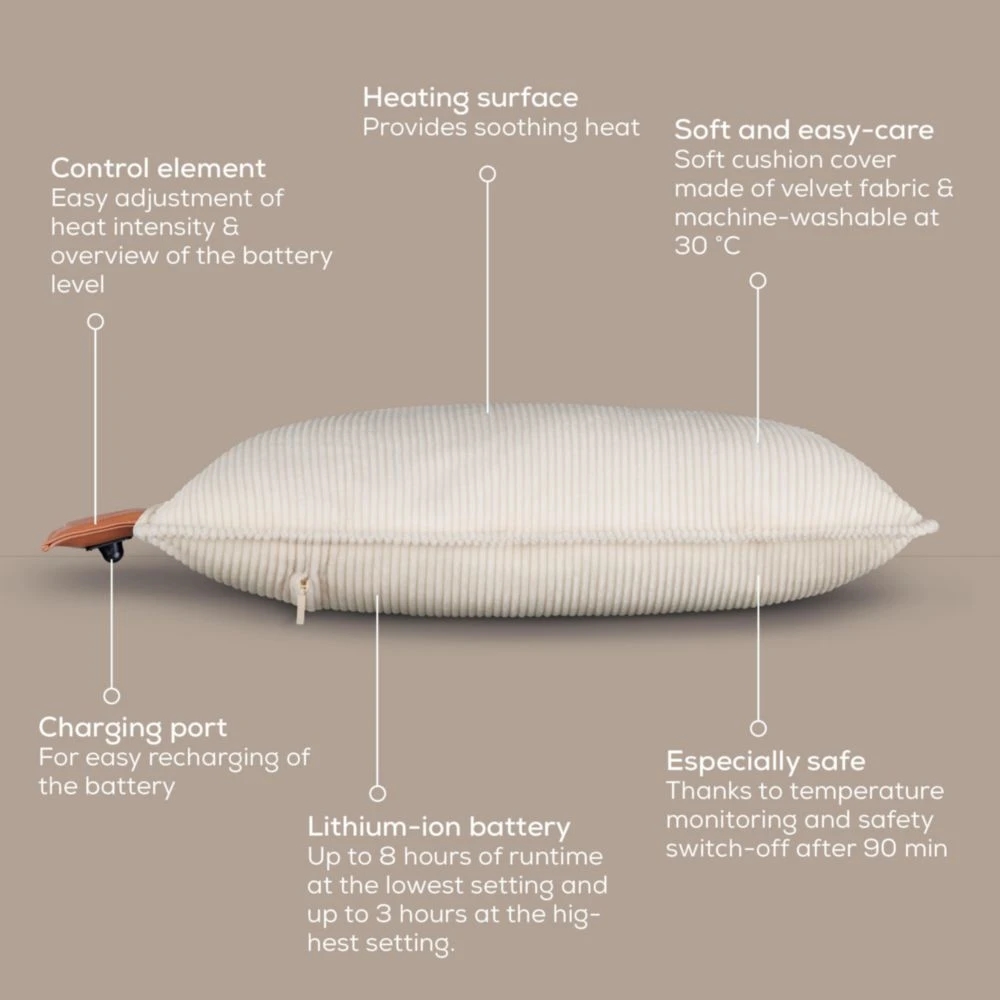 Термоподложка, Beurer HK 77 Heaty cashmere-creme; lithium-ion battery; Soft velvet cushion cover machine-washable at 30°C; 3 temperature settings; Fast heating; BSS; 45(L)x45(W) cm