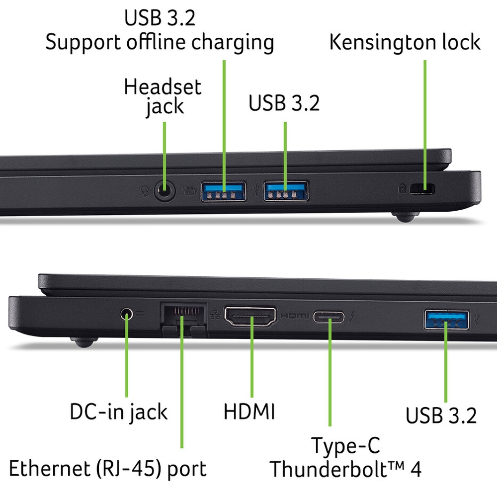 | Звук | Acer TrueHarmony technology for lower distortion, wider frequency range, headphonelike audio and powerful sound, Acer Purified.Voice technology with AI noise reduction in dual builtin microphones |