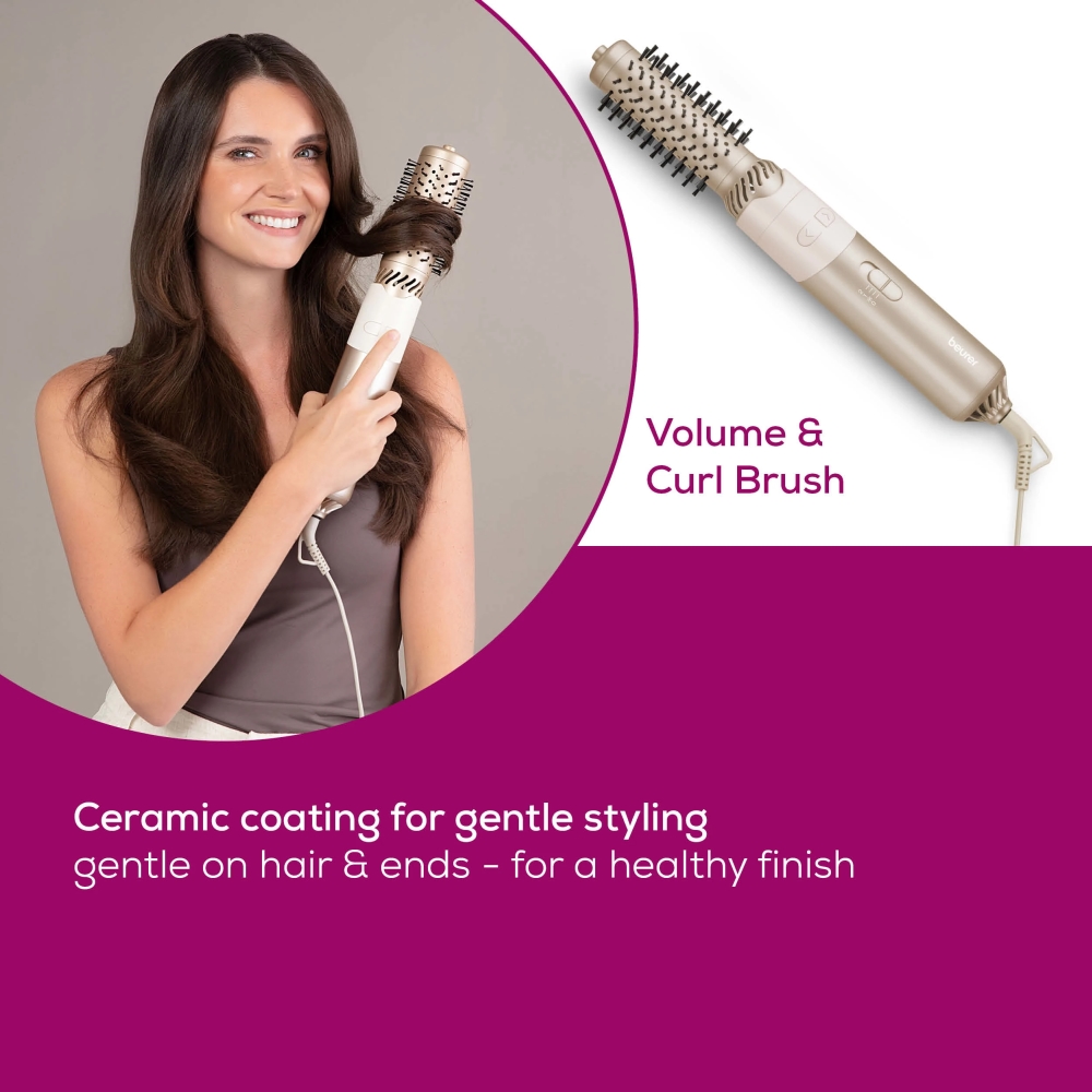 Електрическа четка за коса, Beurer HT 85 Rotaiting hot air brush, ionic function, caremic coating, 2 interchangeable attachments: Heated brush and curling brush, 2 heat settings & cold air setting